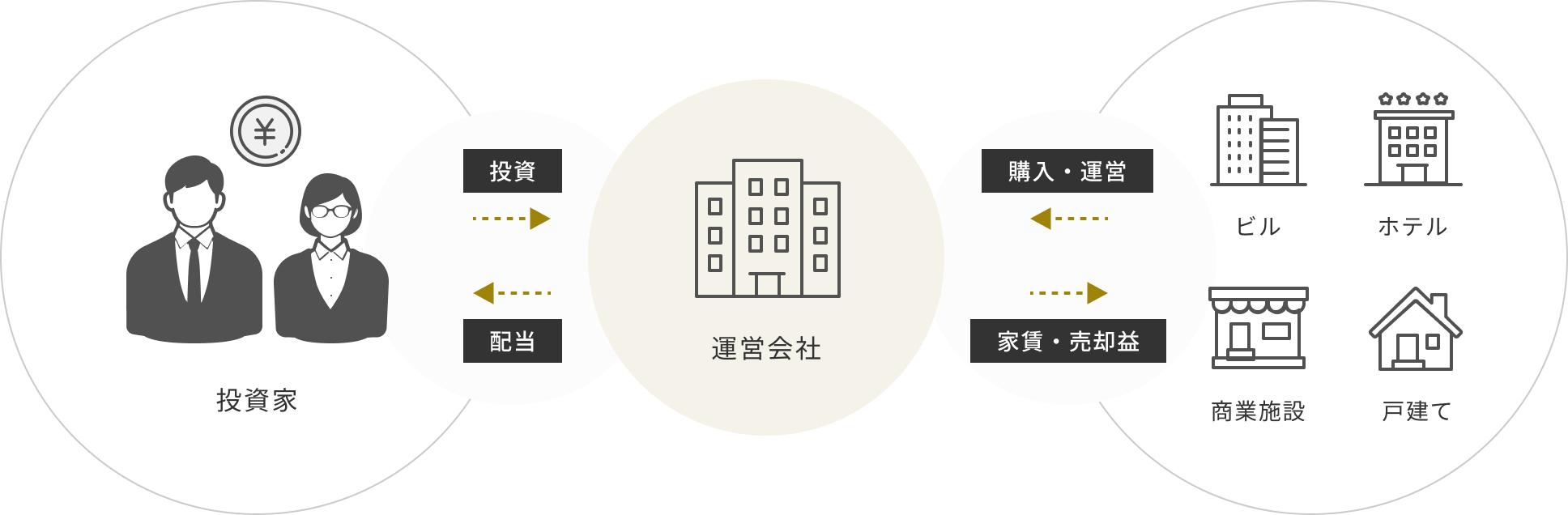 賃料収入や売却益をもとに配当を行います。